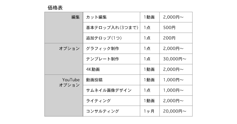 価格表